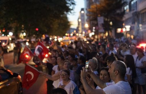 Fakat bu defa, beni geleceğe bağlayan bu tasavvura kısa bir ara verip o gece yapılacak sokak söyleşilerini düşünürken buldum kendimi. Elinde Türk bayrağı ile marşlar söyleyen vatandaşa soruyorlar: Neler söyleyeceksiniz? Vatandaş gür bir sesle yanıtlıyor: (...)